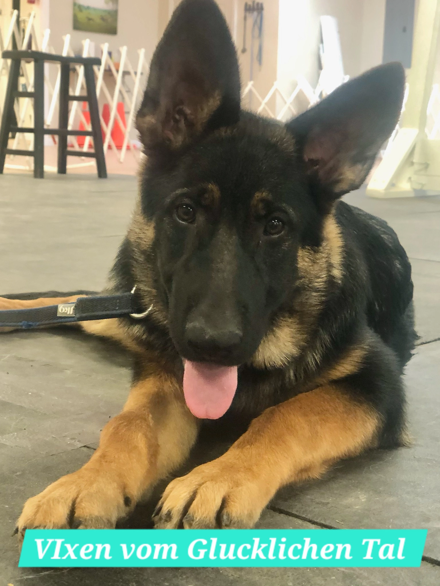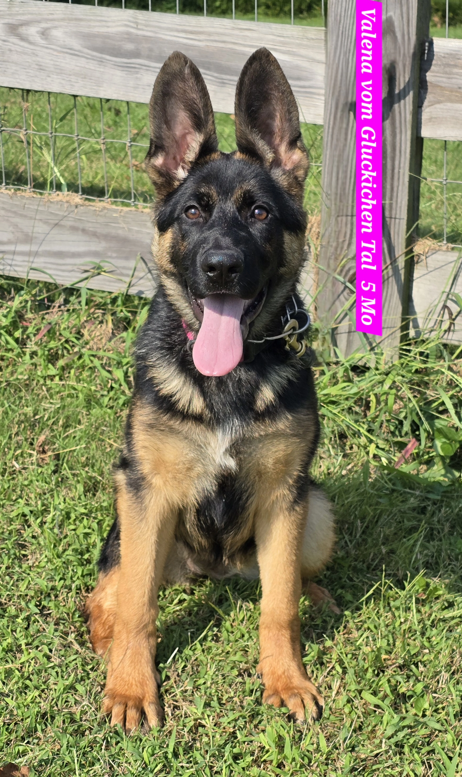 Happy Valley Kennel’s “V2” litter combines German genetics to produce German Shepherds that excel as family companion protectors, as well as, active athletic canines who will excel in any venue or sport. Mischa vom Glucklichen Tal is a product of Happy Valley Kennel’s breeding program. She is a beautiful black & tan female who possess her mother’s athleticism and prey drive. Her mother Melle vom Heidikotten was imported from Germany by owner Krista Wade at 10 wks of age. She was specifically selected for Krista by dear friends in Germany. Mischa like her mother has an outstanding temperament and disposition, loves people, other dogs and is excelling in her AKC obedience training. SG James von Ungalant IGP 3, KK has competed in national events in the sport of schutzhund (IGP). James was also imported from Germany when he was 10 wks old. James is the grandson of one of Germany’s greatest sires Bolle Ja Na Ka. James possesses a large head, massive barrel, stands on solid bone & structure has an amazing temperament & disposition, high prey drive, full hard grips yet is a loving and loyal family German Shepherd.